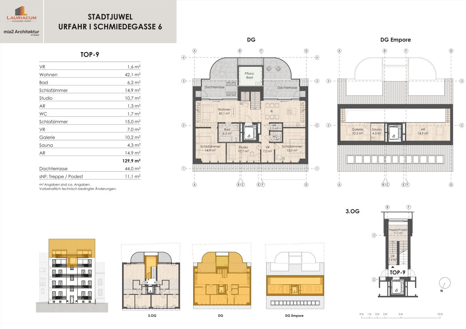 1 barrierefreie Penthousewohnung 130 m² mit 44 m² Dachterrasse