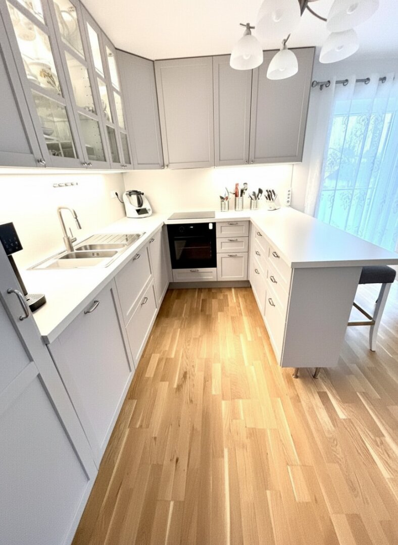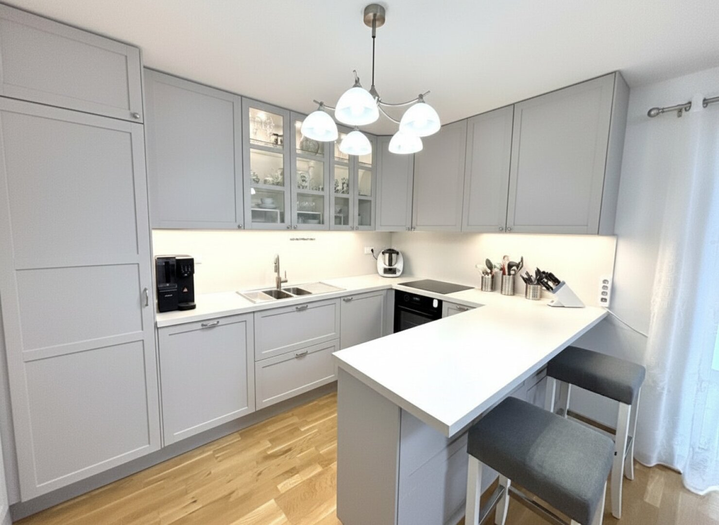 Die geschmackvolle Einbauküche fügt sich harmonisch in den Wohnraum ein und bietet viel Platz zum Kochen und Genießen. Ein praktischer Abstellraum sorgt für zusätzliche Ordnung und Stauraum. Hochwertige Parkettböden unterstreichen das stilvolle Ambiente. Insektenschutz und Rollläden sorgen für ein Plus an Behaglichkeit und Ruhe.
