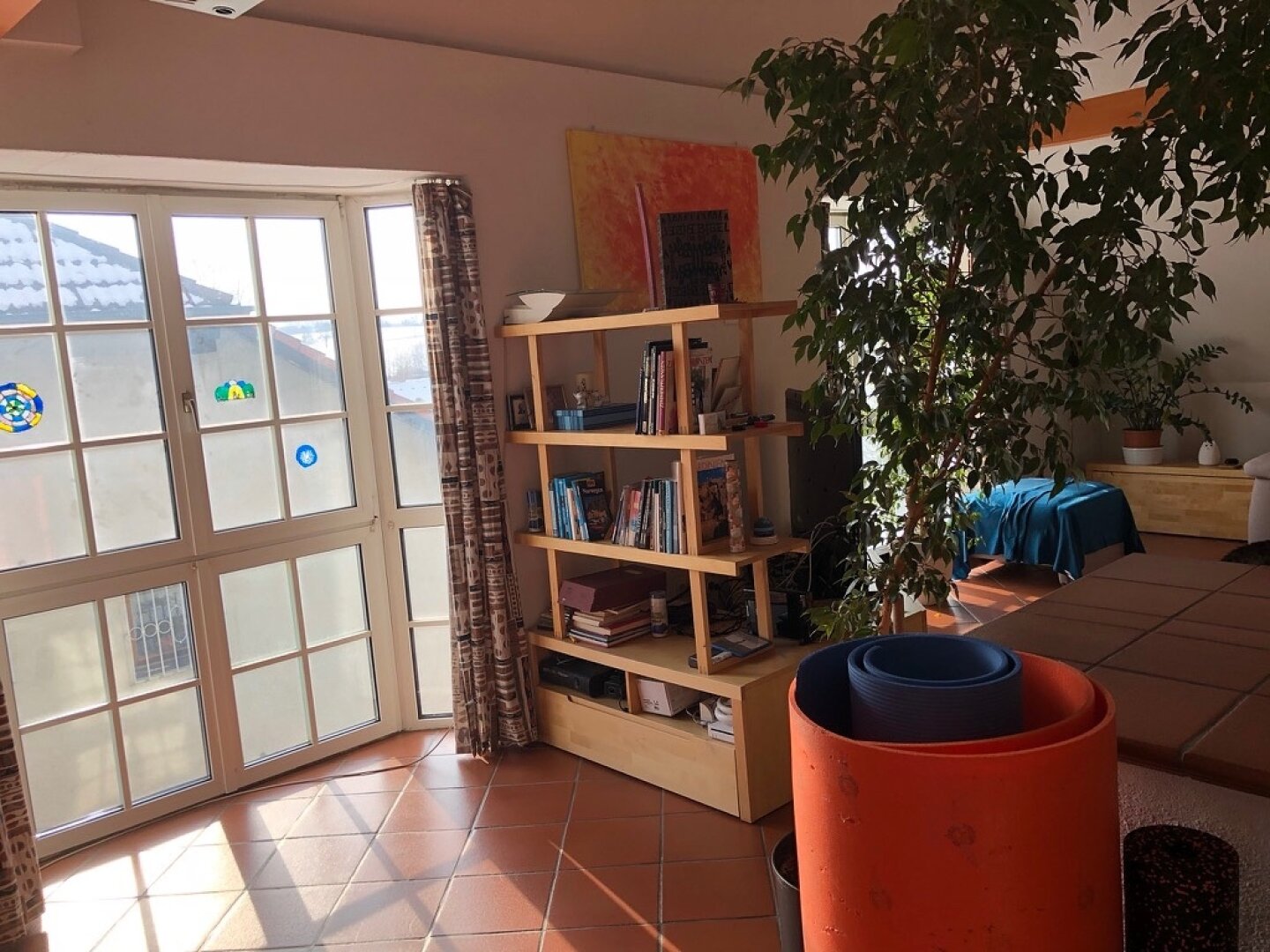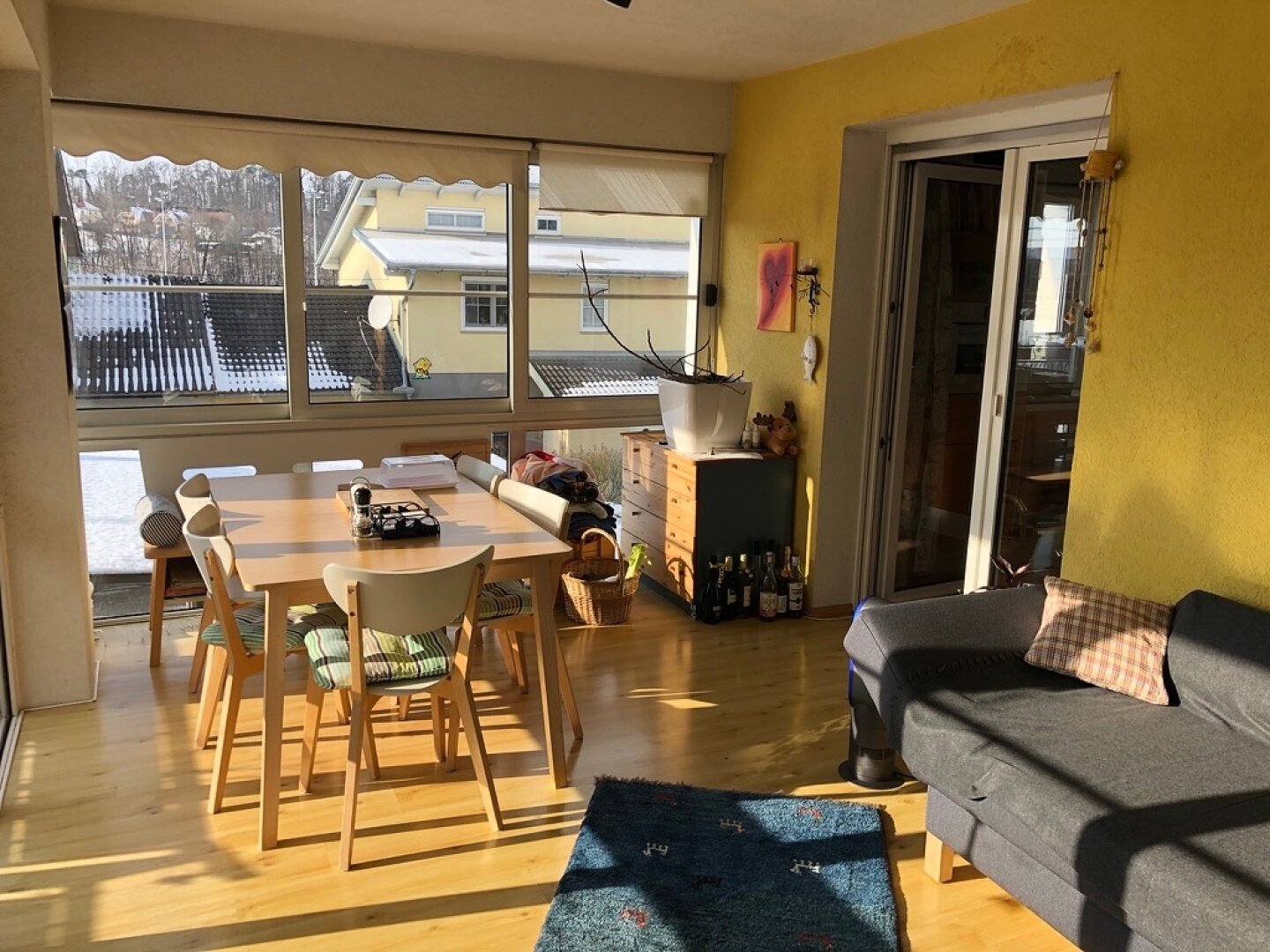 Die Wohnung im Erdgeschoss wurde durch einen Wintergarten erweitert, wodurch der Wohnbereich zusätzlichen Raum und viel Tageslicht erhält. Von hier aus besteht ein direkter Zugang zum Garten.